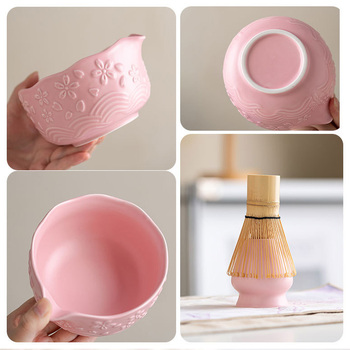 Keramische 7-delige Matcha Kom Set Reliëf Kersenbloesem Luxe Hoogwaardige Buitenverpakking Voor Feesten Nog Geen Reviews 105 Verkocht
